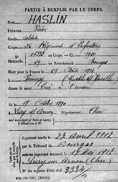Genre de décès : Tué à l`ennemi