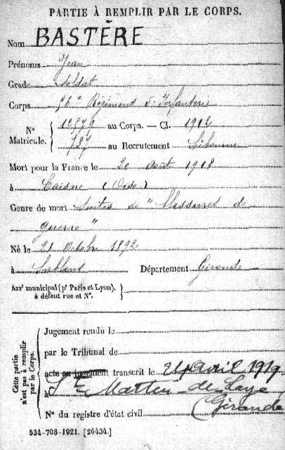 Citation à l'ordre du 134ème R.I. n° 12 du 21/04/1918