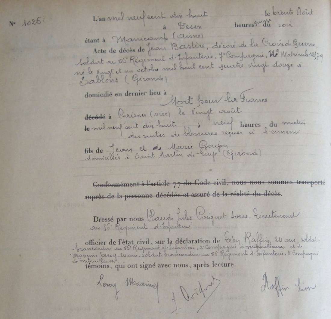 Citation à l'ordre du 56ème R.I. n° 197 du 11/07/1918
