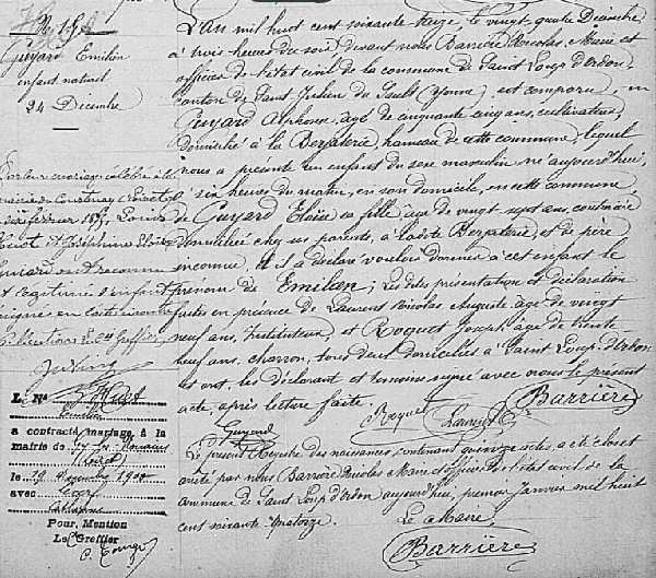 Marié le 19/11/1900 à Gy-les-Nonains (45)