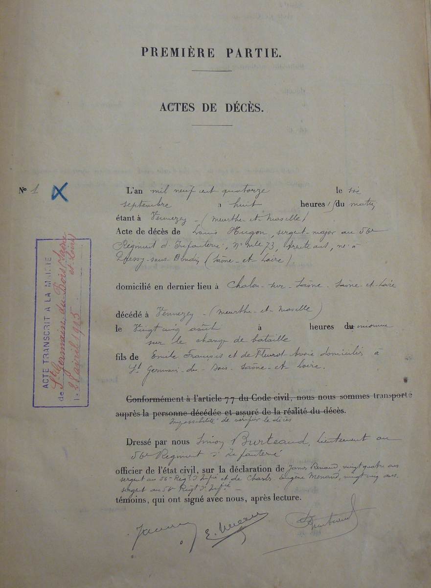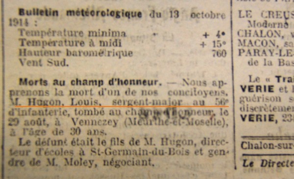 Père : HUGON Émile François