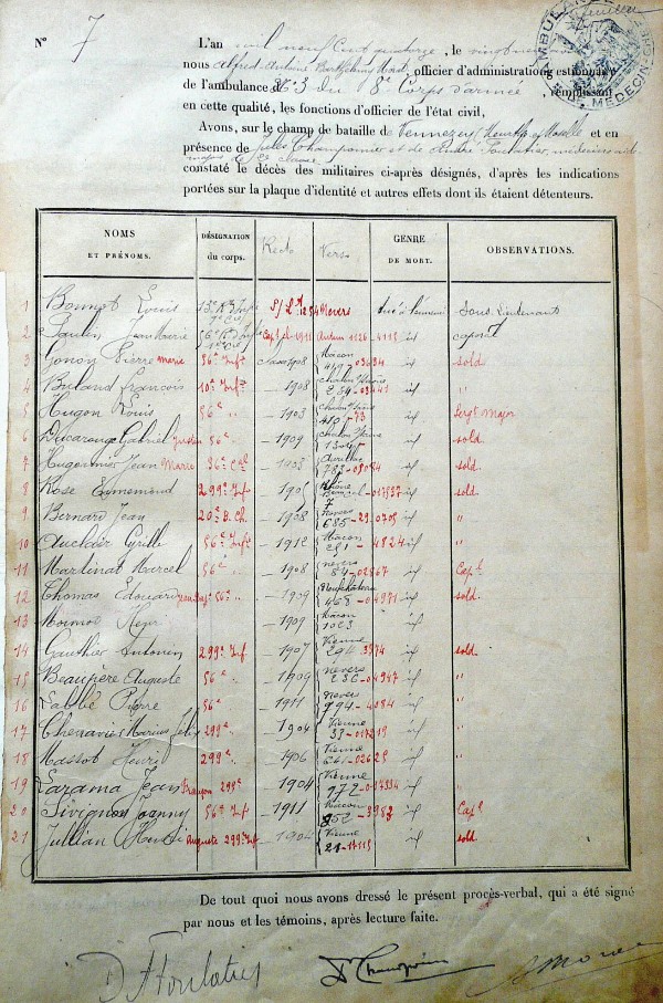 Genre de décès : Tué à l`ennemi