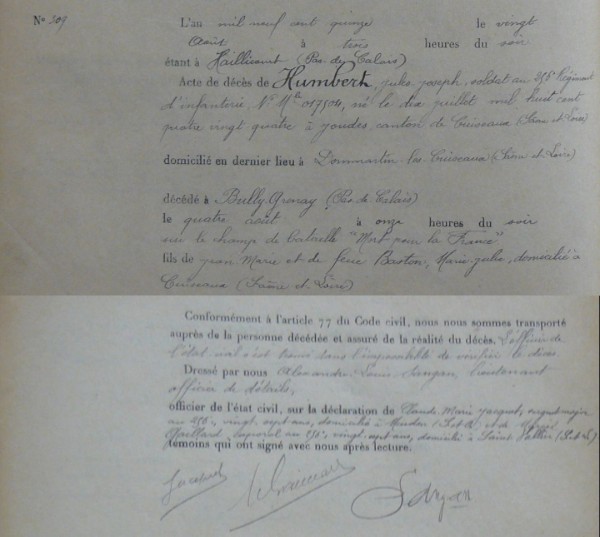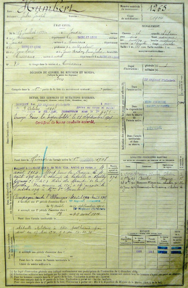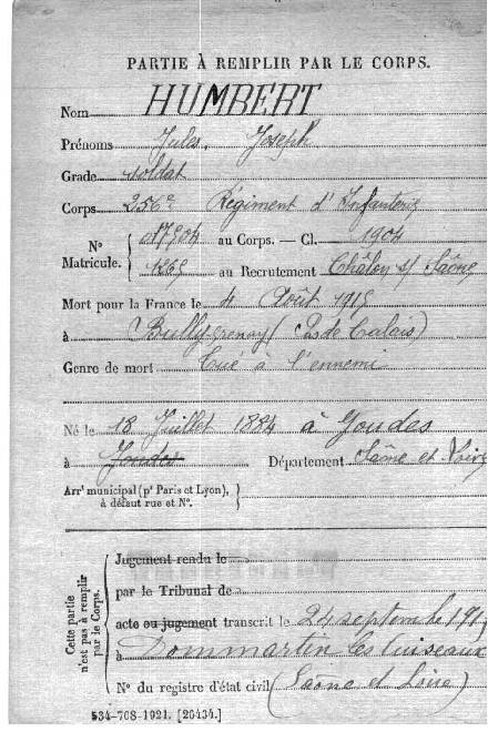 Epouse : Mme Vve HUMERT née JOSSERAND
