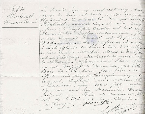 Lieu précis de décès : A son domicile, 56 Boulevard de Courbevoie