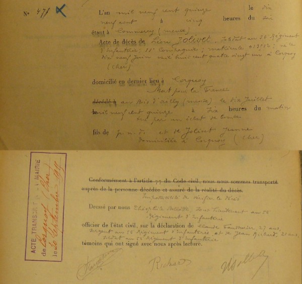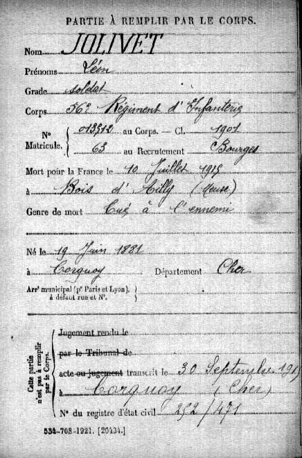 Lieu de décès : Bois d`Ailly