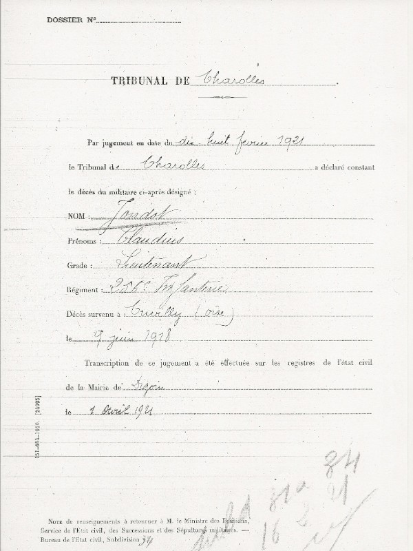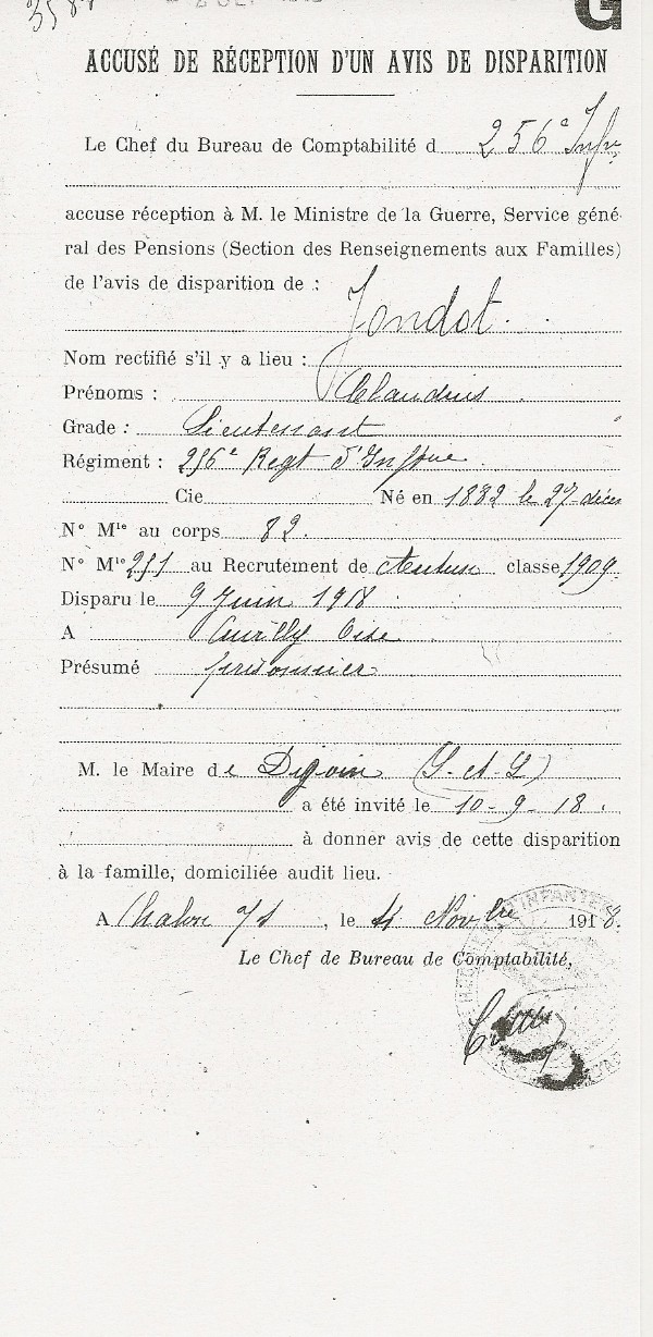 Avis de nomination de Sous-Lieutenant à Lieutenant = Courrier de S&L du 19-07-1917