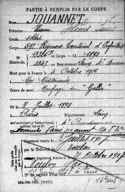 Également transcrit le 11/06/1918 à Paris 12ème (75)