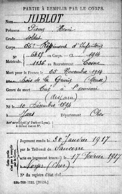 Genre de décès : Tué à l`ennemi