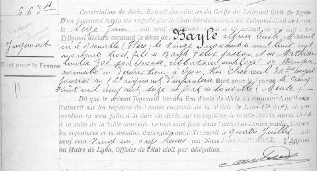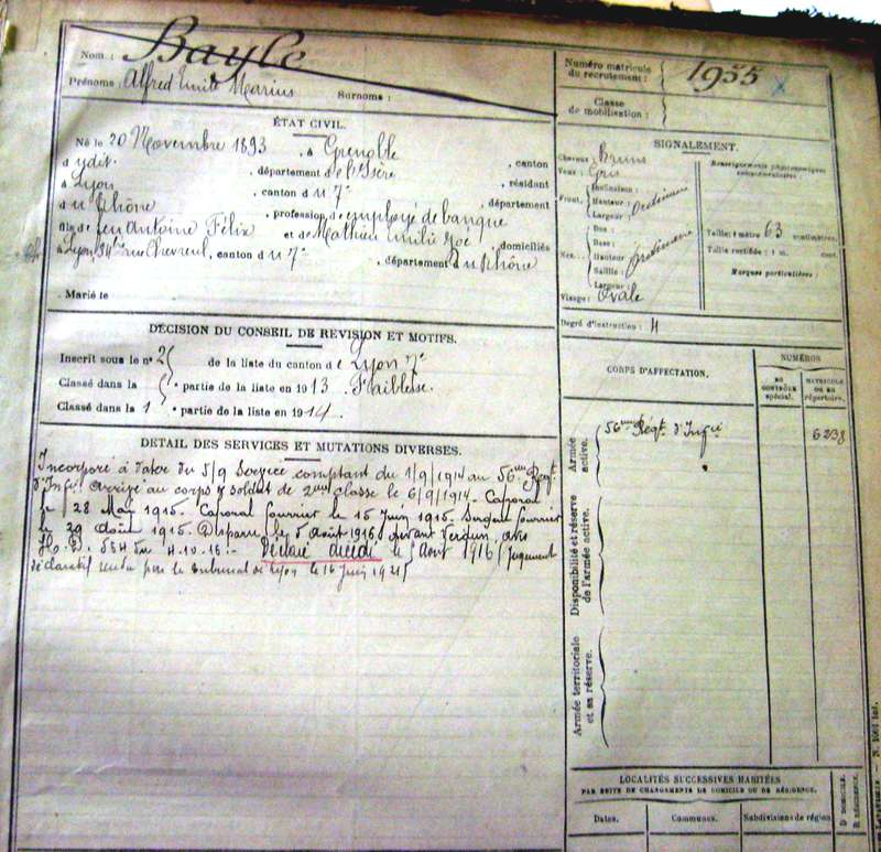 (a) Le prénom de Marius est cité sur MDH mais pas sur (illisible), Il ne figure pas sur RP --(b) SERGENT FOURRIER