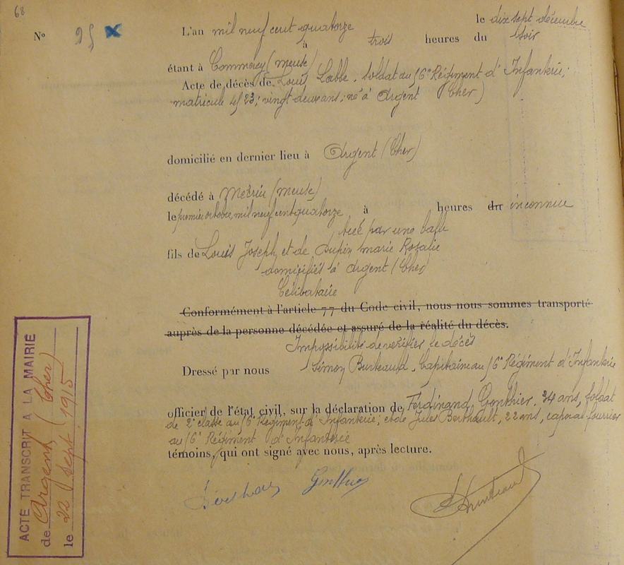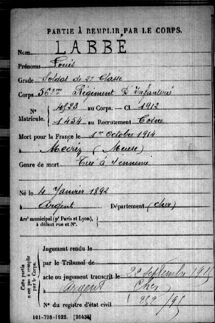 Mère : Mme Vve LABBE née DUPIN Marie Rosalie