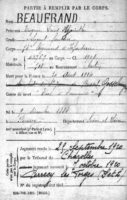 Sergent fourrier SDG: N.N. Gosselming, Moselle, ossuaire n° 1