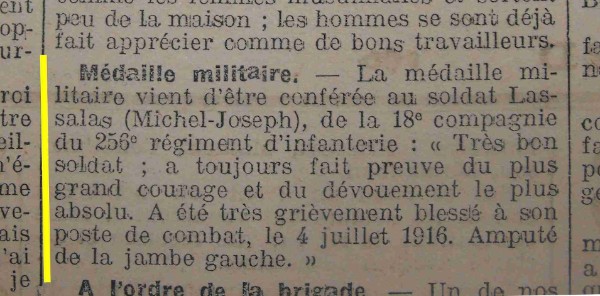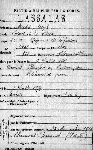 Epouse : Mme Vve LASSALAS née CHAZE Antoinette