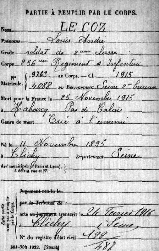 Genre de décès : Tué à l`ennemi