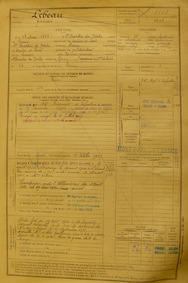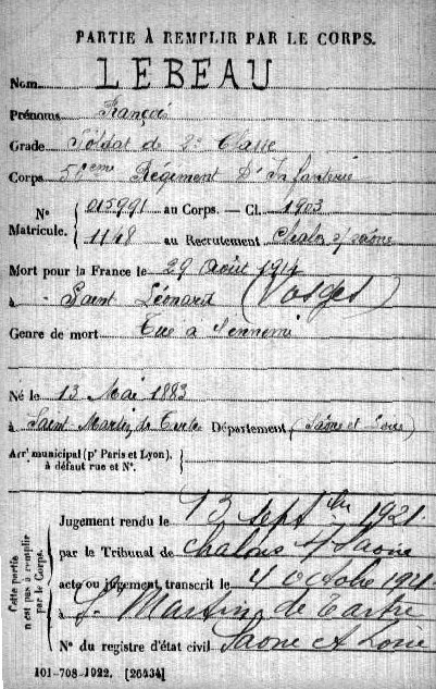 Il y a incohérence entre fiche mémoire des hommes et le registre des pécules. Le RP le porte au 256 et DCD le 09 OCT 14 à Sampigny (55) MDH tué à St Leonard 88, le 29 Août 14