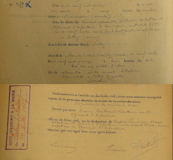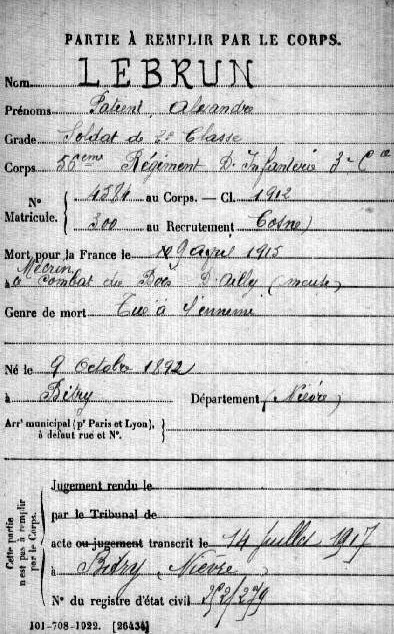 jugement de DC transcrit le 14/07/1917 à Bitry 58