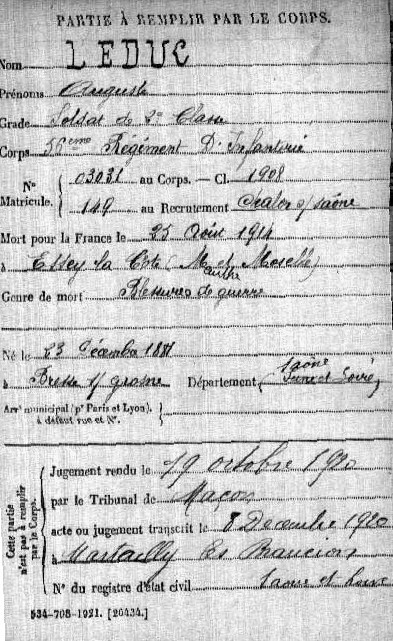 Père : (a)Le grand-père paternenel : Mr LEDUC Jean (veuf)