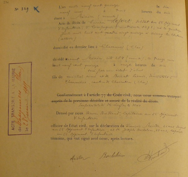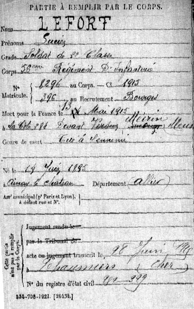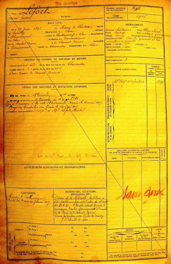 Père : LEFORT Michel veuf