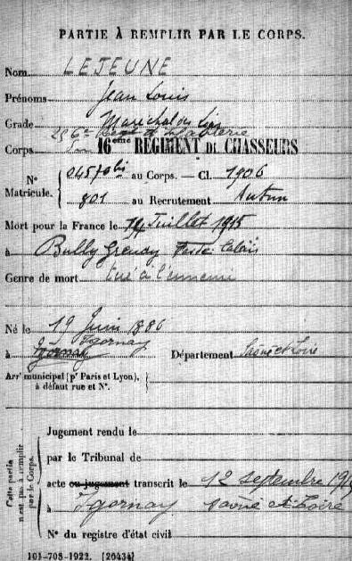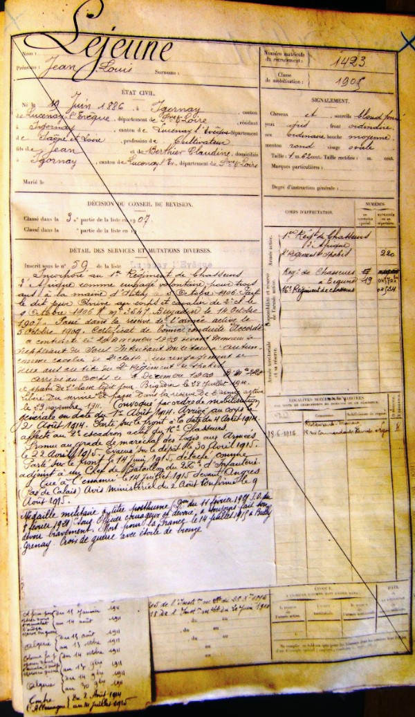 Détaché le 14/06/1915 comme adjoint à un Chef de bataillon du 256ème R.I. (Appartenait au 2ème escadron actif du 16ème Chasseurs de Beaune (21)