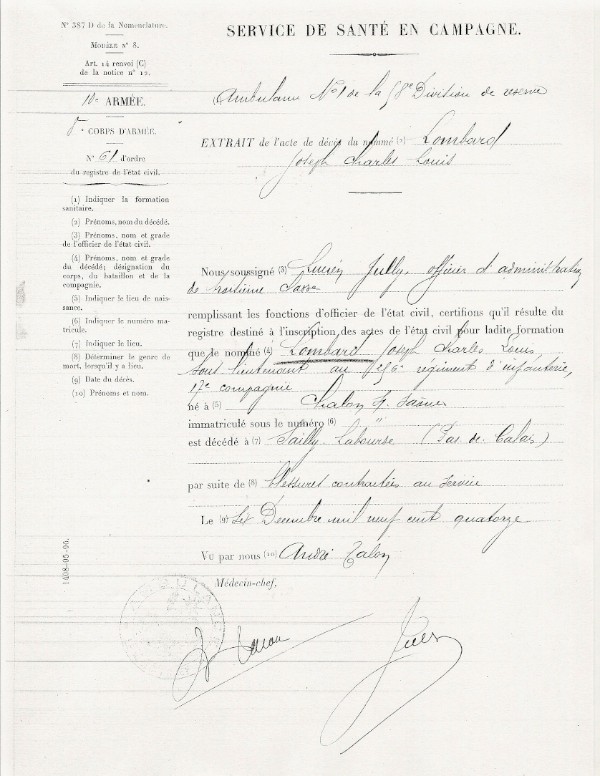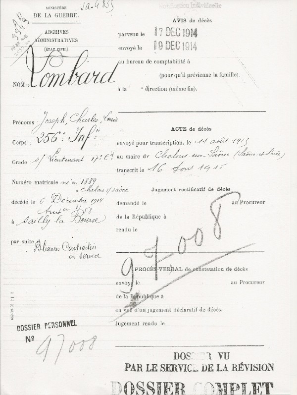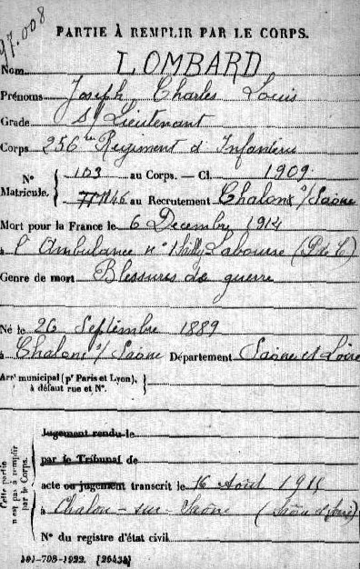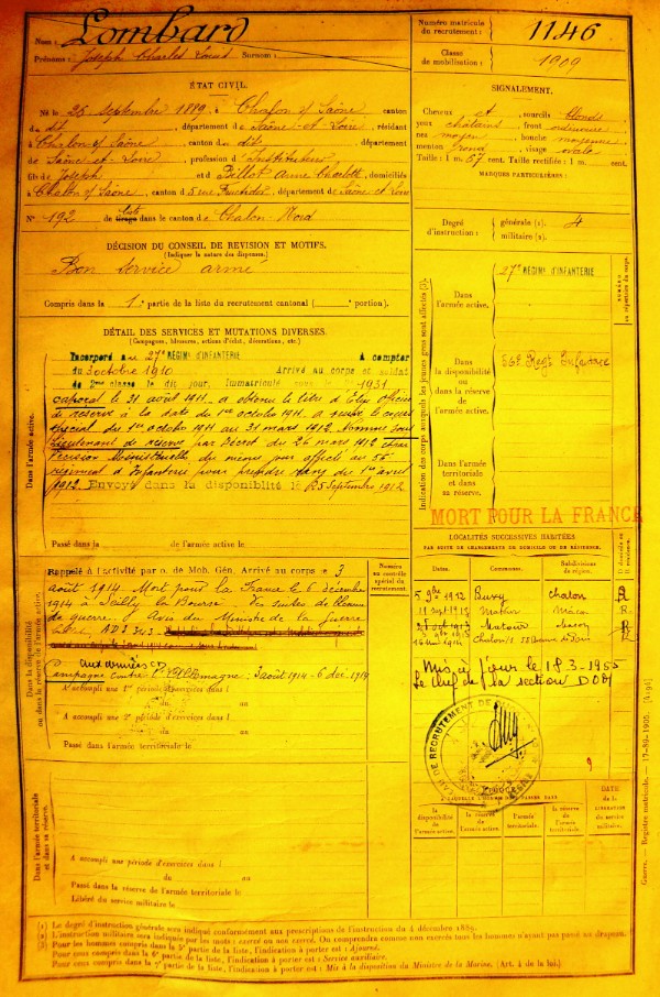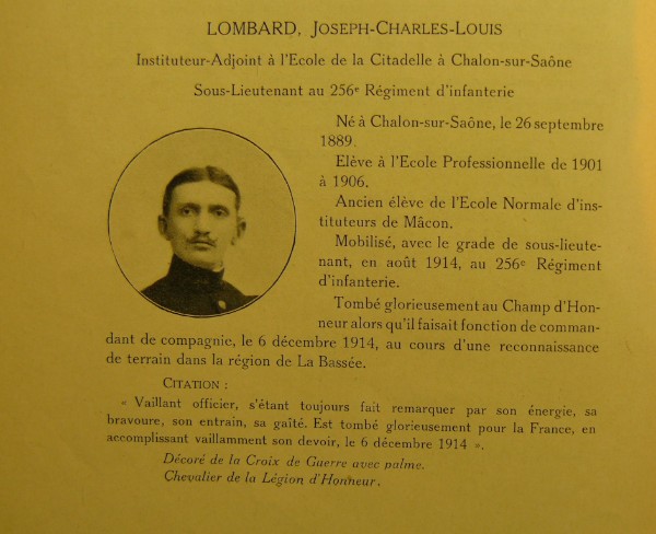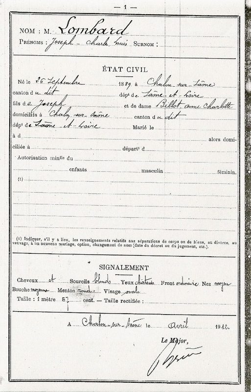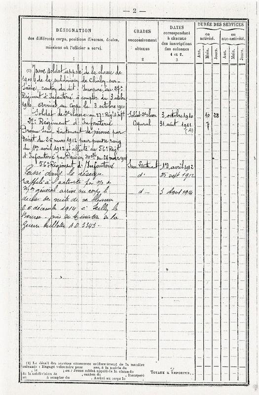 Les parents demeuraient Route de Paris à la naissance Ancien élève Ecole Professionnelle Chalon s/S de1901 à 1906 I Ancien élève Ecole Normale Instituteurs de Mâcon I Mobilisé en août 1914