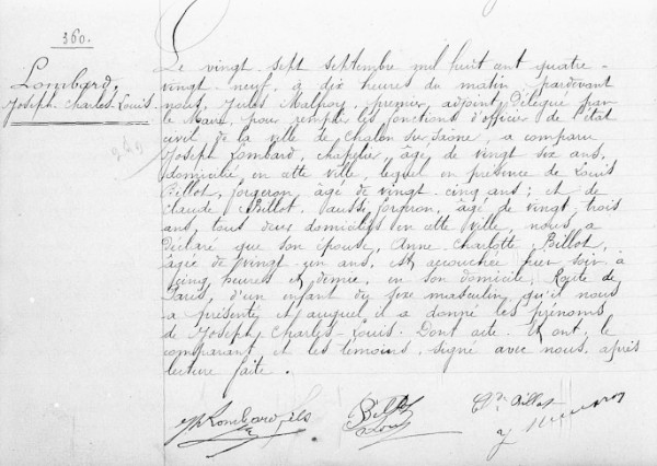 Père : LOMBARD Joseph (Chapelier à la naissance)