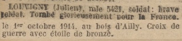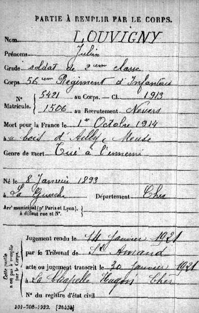 Lieu de décès : Bois d`Ailly
