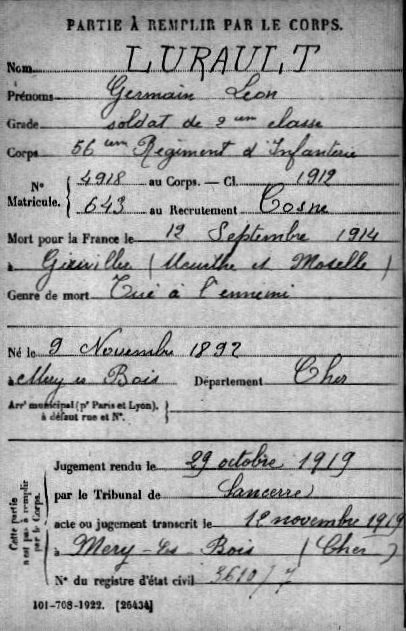 Lieu de naissance : Méry-ès-Bois