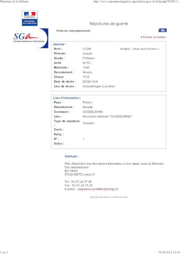 Décédé en captivité à Gosselming des suites de ses blessures de guerre.