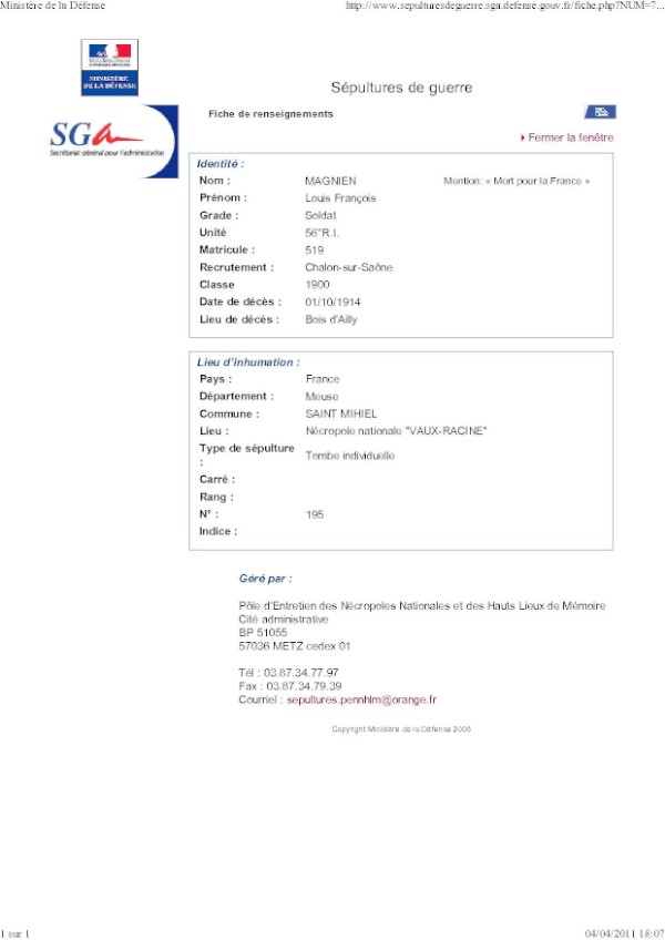 Sépulture : Nécropole nationale Vaux-Racine à Saint-Mihiel (55)