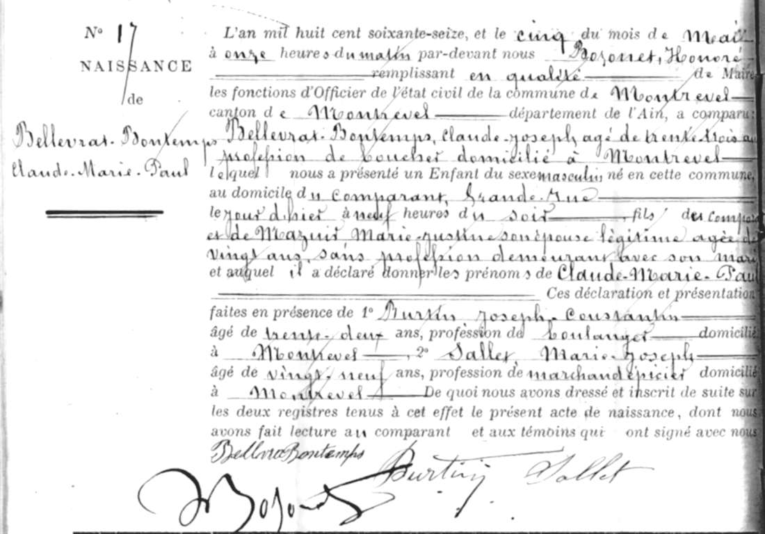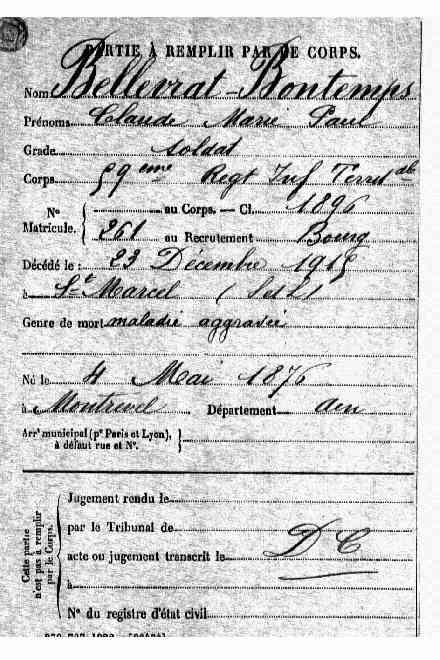 Epouse : Mme. Vve. BELLEVRAT-BONTEMPS