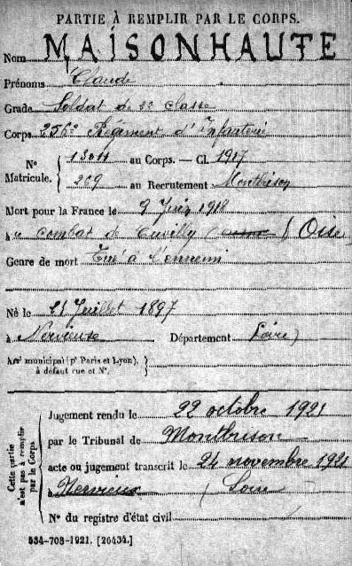 Lieu de décès : Cuvilly