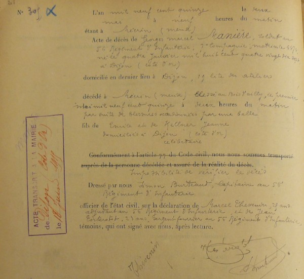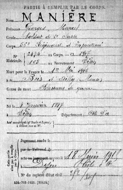 Lieu précis de décès : Bois d`Ailly