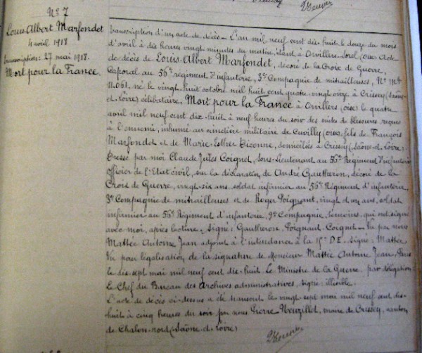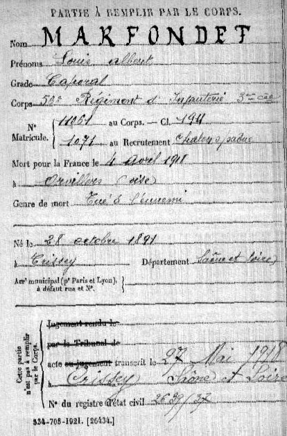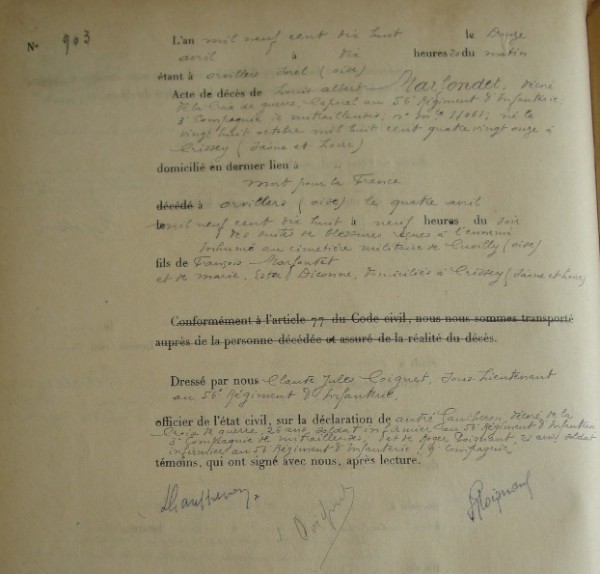 Sépulture : 1ère inhumation cimetière militaire Cuvilly (60)