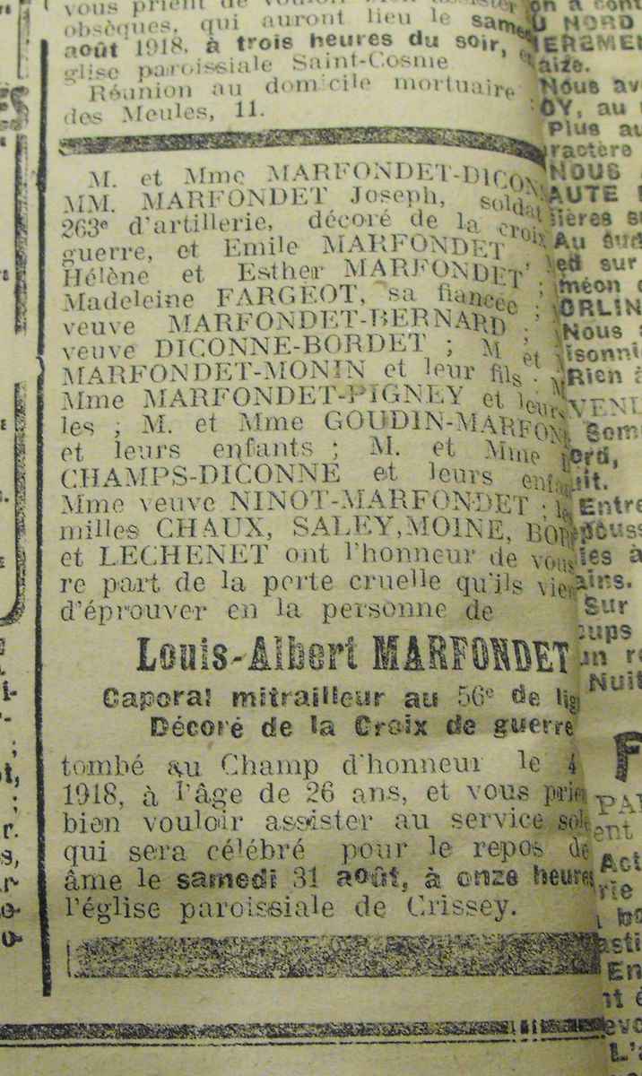 Avis de blessure à la carotide = Courrier de S&L du 10-05-1918 I Avis de messe = Courrier S&L du30-08-1918