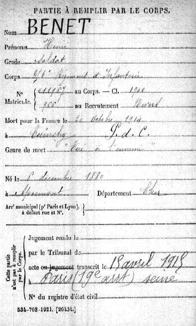 Genre de décès : Tué à l`ennemi
