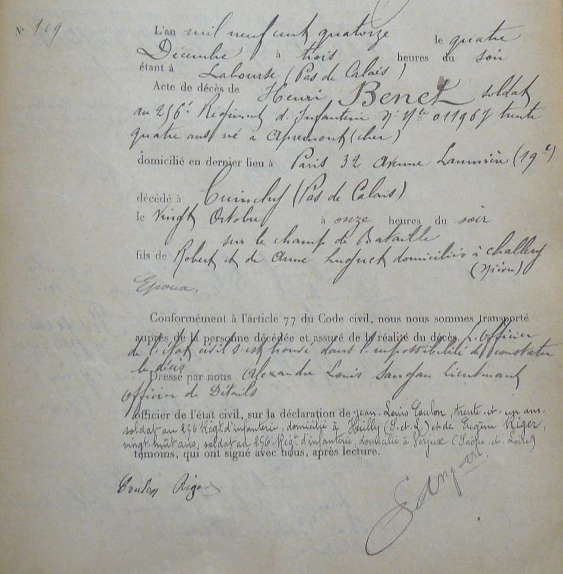 Lieu de décès : Cuinchy