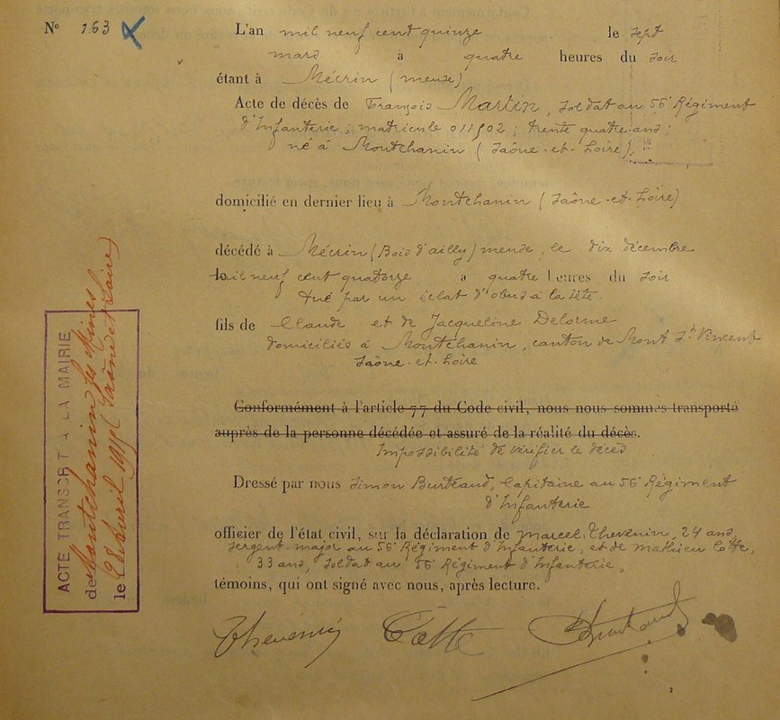 Montchanin-les-Mines (Commune renommée Montchanin le 04/10/1958) Avis de liste de transcription DC = Courrier de S&L du 03-02-1916