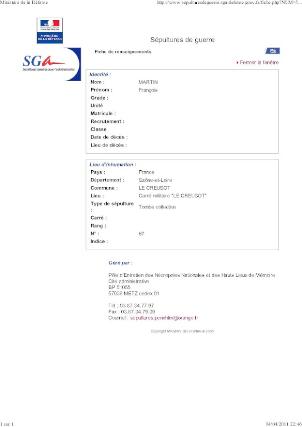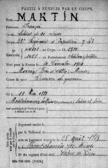 Epouse : Mme Vve MARTIN née FOREST Reine