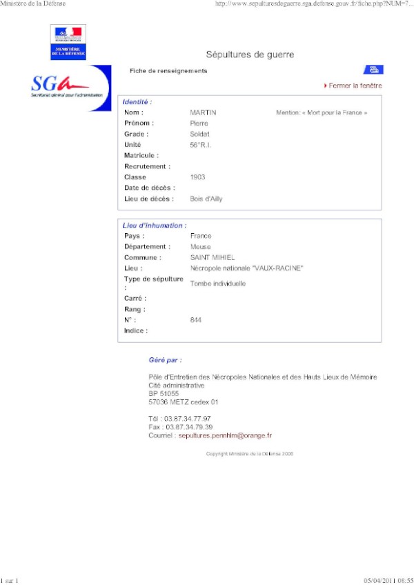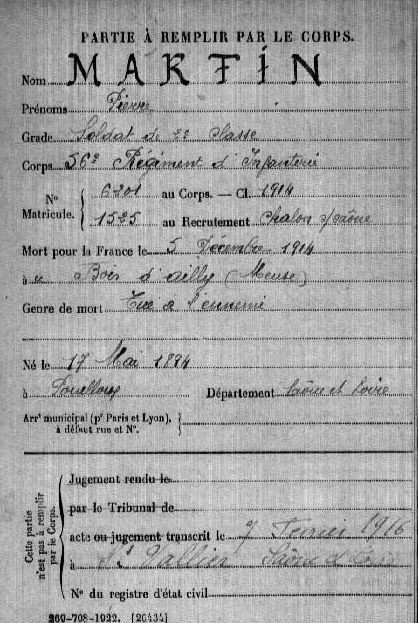 Genre de décès : Tué à l`ennemi