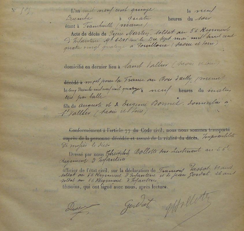 Lieu précis de décès : Bois d`Ailly