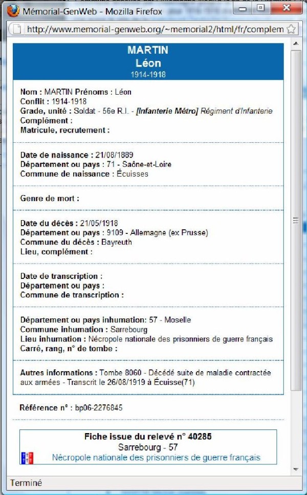 Sépulture : Nécropole nationale Prisonniers de Guerre à Sarrebourg (57)