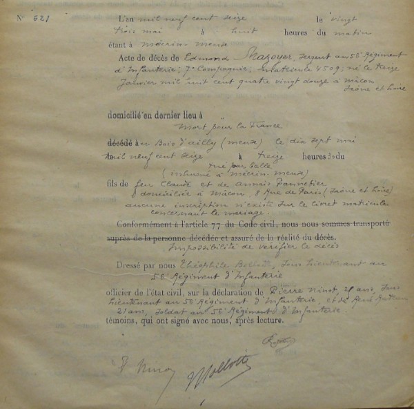 Lieu précis de décès : Bois d`Ailly