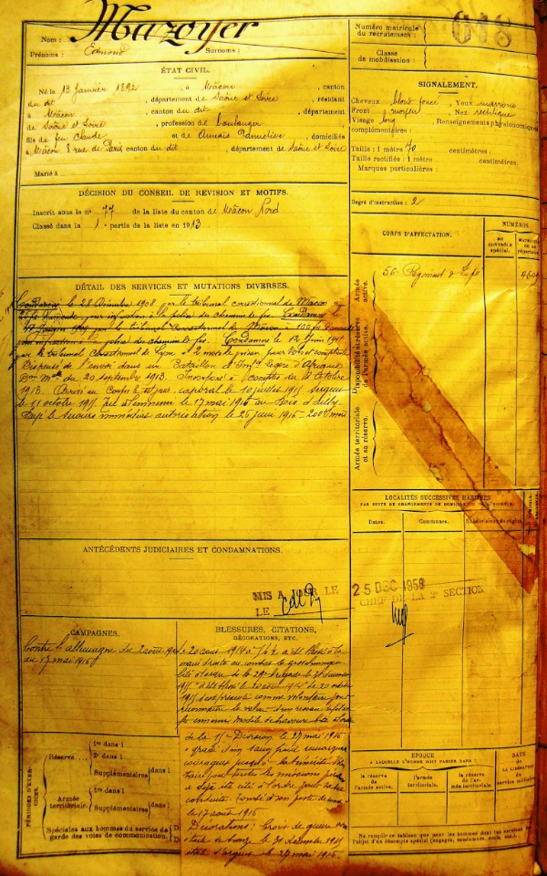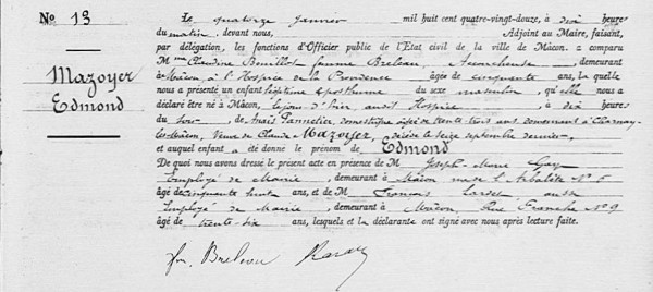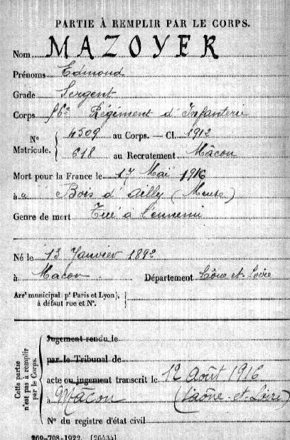 Mère : Mme Vve MAZOYER née PANNELIER