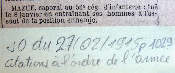 Epouse : ROSAIN Vve MAZUÉ Francine Blanche