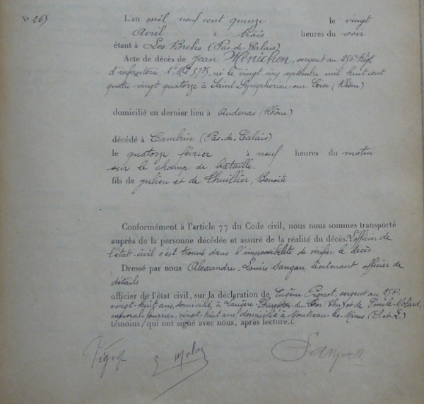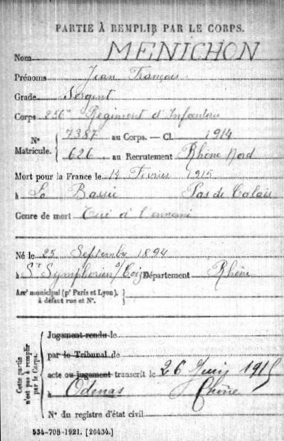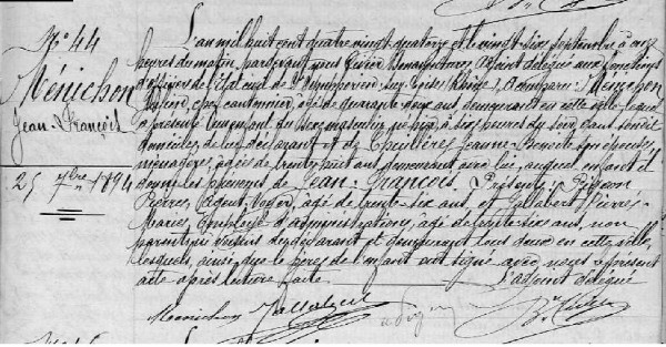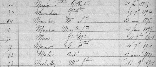 Celibataire. Ascendant vivants M Mm Ménichon - Thuillière.