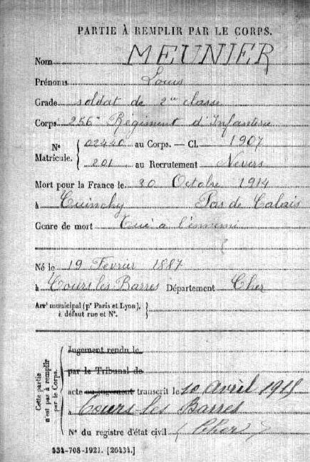Mère : Mm Veuve MEUNIER née ROUGEAUD