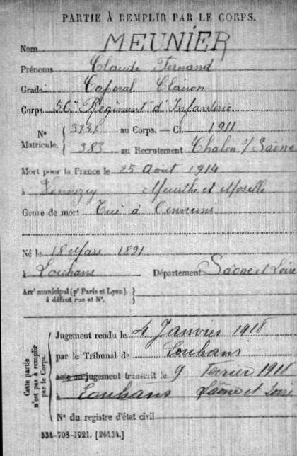 Epouse : Mme Vve MEUNIER Marguerite Rose
