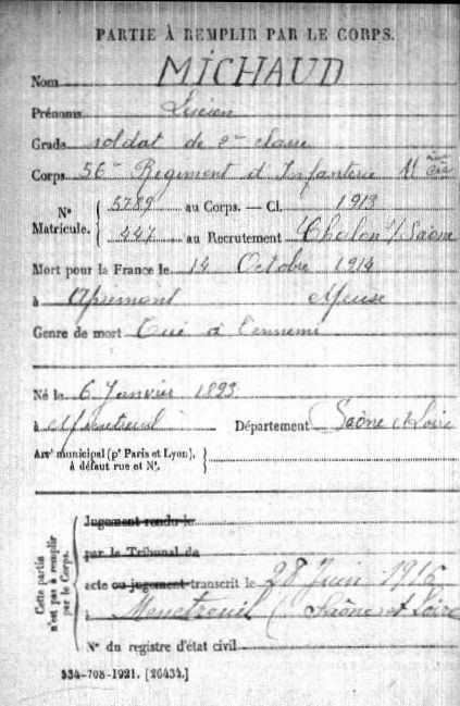 Mère : Mmr MICHAUD née GUIGUE Marie Claudine