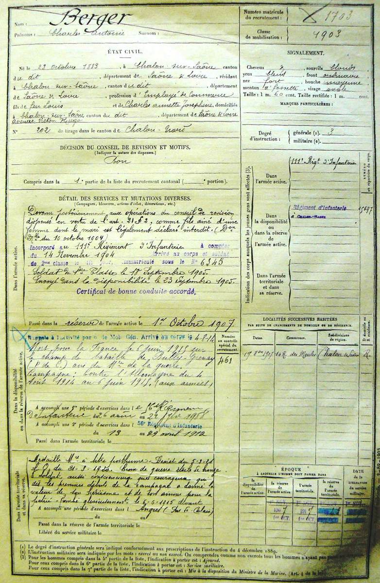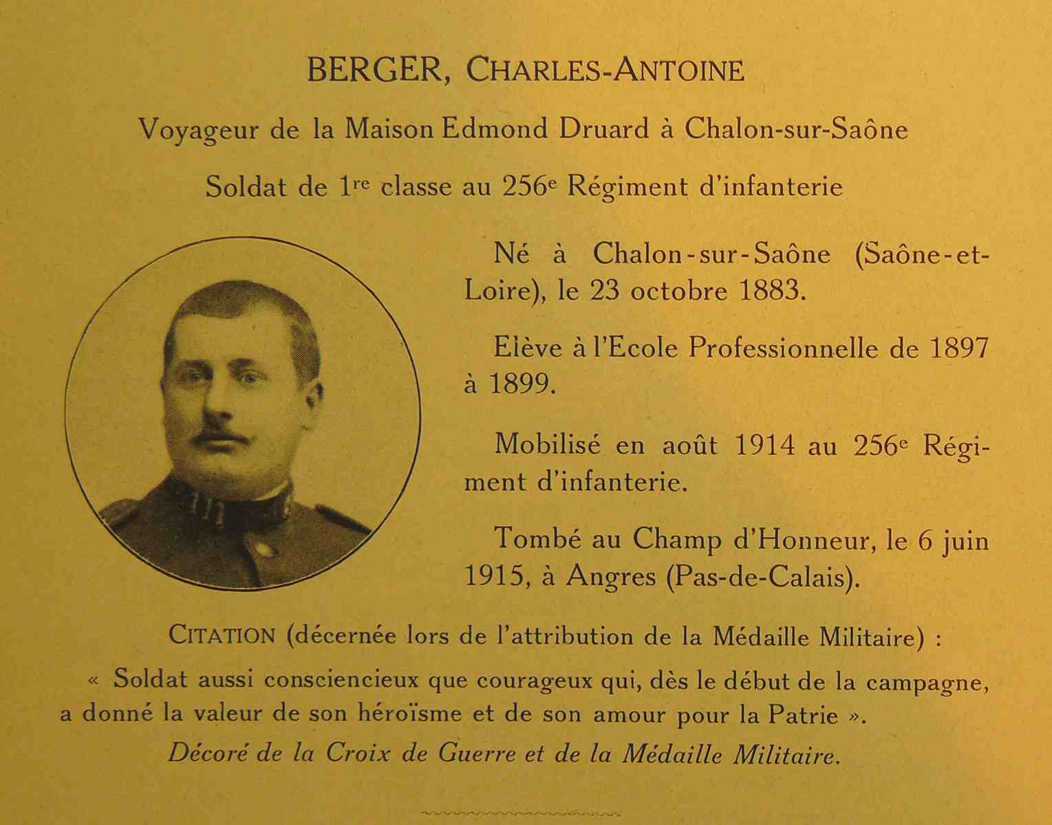 Elève Ecole Professionnelle Chalon s/S 1897 à 1899 I Mobilisé en août 1914 I Inscrit au livre d'or de la Prof