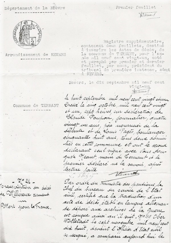 Registre d'état civil : Ternant