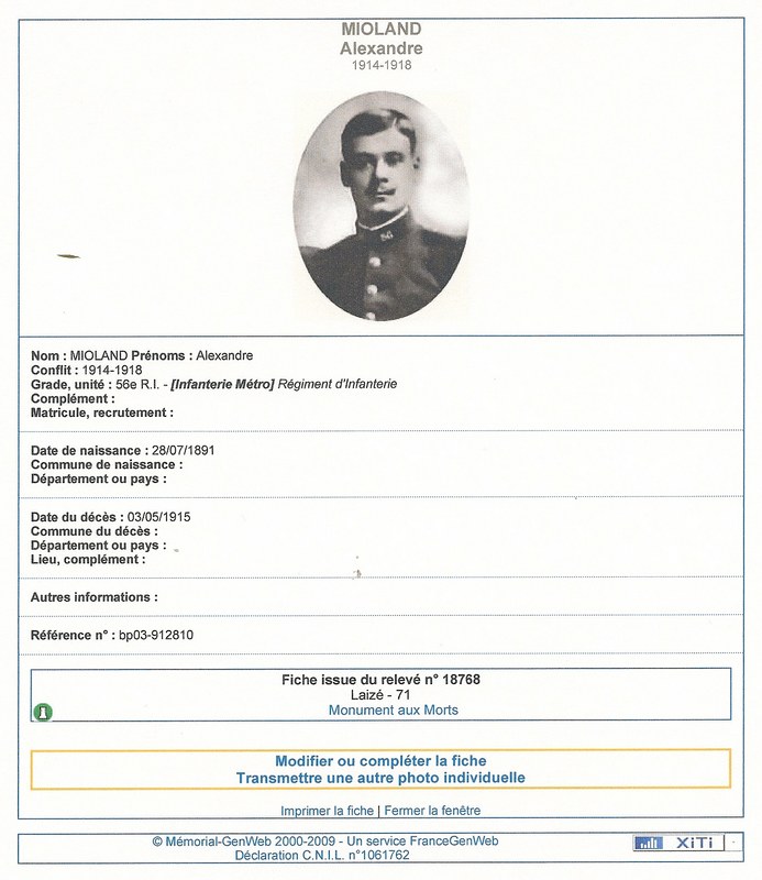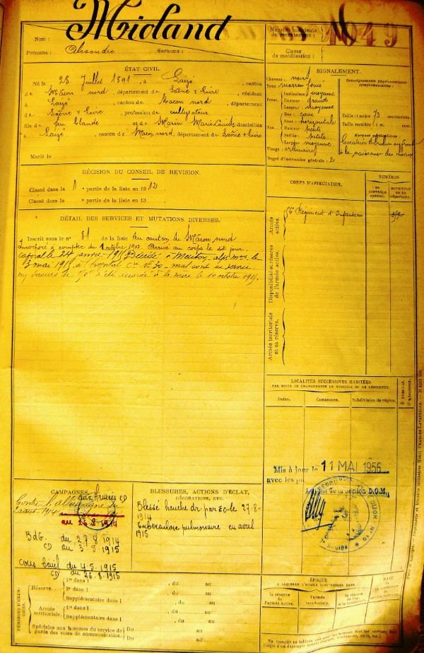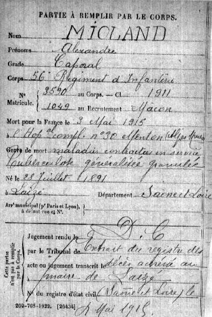 Caporal --- Pour raison médicale, il n`existe pas de fiche MDH détaillée (a) le numéro n`est pas certain car illisible sur RP